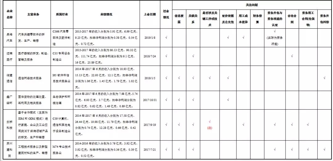 通过查阅近期证监会在反馈中问及劳务外包问题的IPO案例,将若干相关企业基本情况和关注问题统计如下: