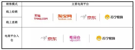 公司线上销售模式包括线上经销、电商平台入仓和线上直销,公司线上主要销售平台如下: