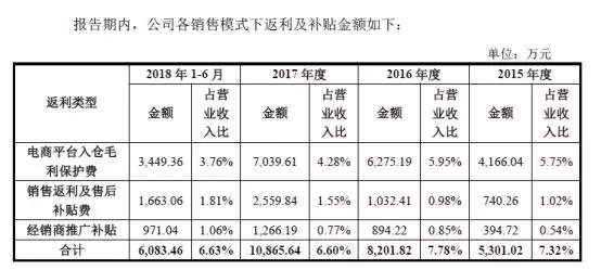 报告期内,公司通过线上销售的收入分别为64,046.70万元、95, 954. 45万元、150, 919. 63万元和82, 590. 68万元,2015-2017年度增长率分别为49. 82%和57. 28%。