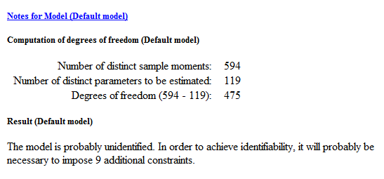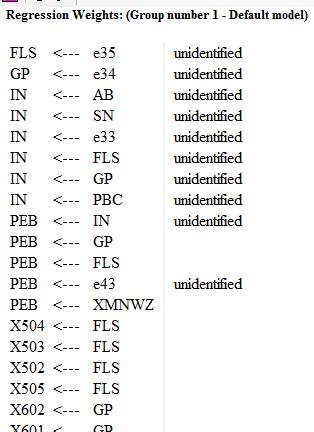 图二图三是其中一次实证的结果截屏,始终导不出结果,result显示,The model is probably unidentified. In order to achieve identifiability, it will probably be necessary to impose 9 additional constraints.不知道该如何操作了,麻烦给为看看,对模型图提点意见。