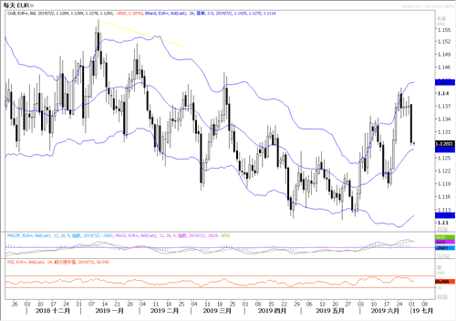 昨日美元指数因上周末G20峰会中美对话的佳音喜获动能,向上反弹,欧元/美元疲弱。欧市盘中公布的欧元区6月制造业PMI表现低于荣枯线,更是压低了欧元的表现,进入今日亚盘,欧元兑美元更是跌落1.13之下,看起来盘整修正态势还在进行。不过从技术图形上看,日线图上,价格自6月19日以来已经形成旗形形状,可等价格之后突破后依势交易。