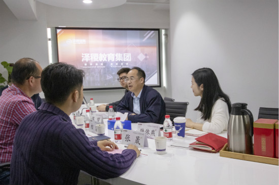 泽稷教育董事长蒋望对上海海事大学法学院各位领导的到来表示热烈欢迎。他简单介绍了泽稷教育的发展历程,着重突出了泽稷教育的业务特色和文化理念。他指出,泽稷教育一直以来都与上海海事大学法学院保持着密切的交流和合作,今后将一如既往地支持学院的教学及学生就业工作,也期望学院能推荐更多优秀的学生加入到泽稷教育。