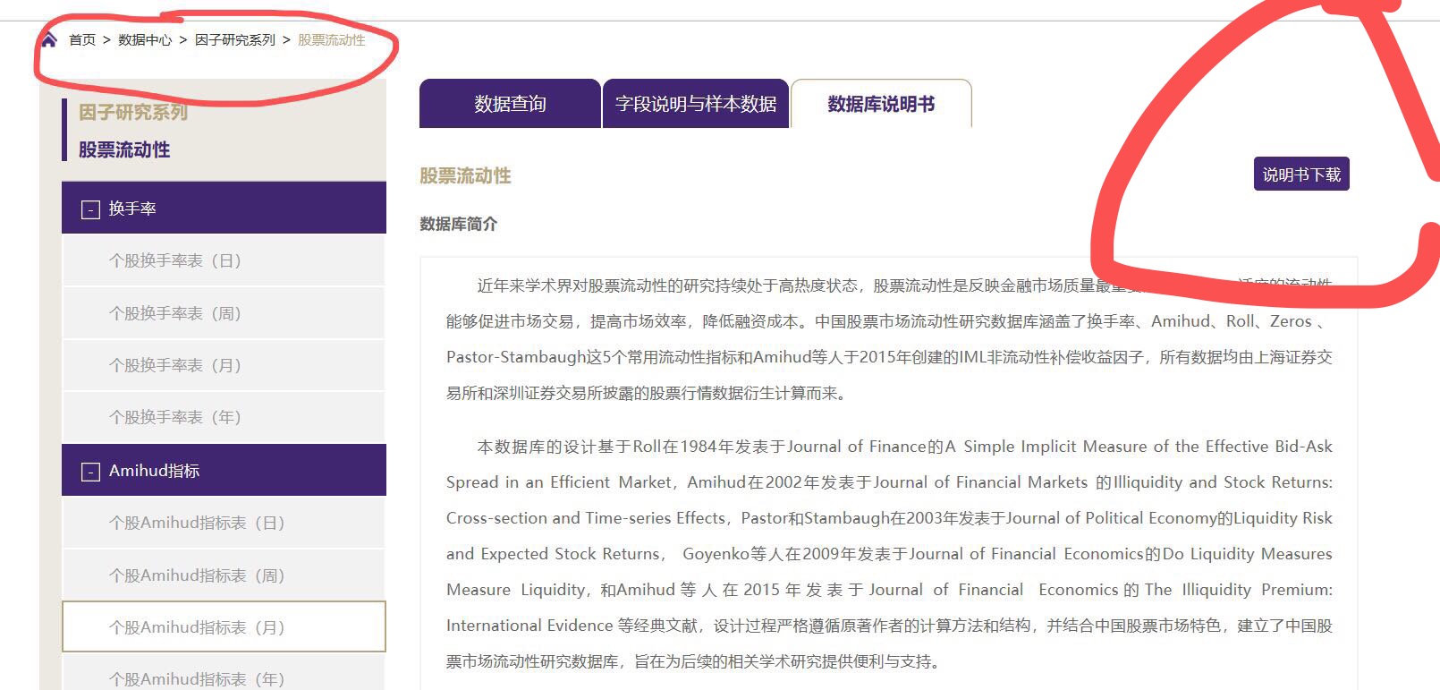 请求各位帮忙下载CSMAR数据库股票流动性子库说明书