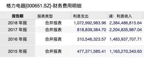 利息,也称为财务费用,是指利息支出与利息收入的差额,即利息=利息支出-利息收入。利息支出是指公司举债形成的债务成本,利息收入是指公司储蓄账户中的现金、定期存款、以及其他投资收益所产生的收益。大多数公司的利息支出要大于其利息收入,即财务费用为正值。然而,一些行业龙头企业,其处于产业链核心地位,盈利能力强、现金流状况好,无需举债,那么就会出现财务费用为负的情况,如格力电器。