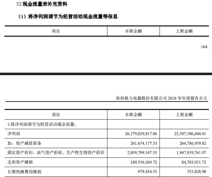 通常,企业原始报表中不会单独列出折旧与摊销科目,需要我们从年报中寻找。我们从格力电器年报中的“现金流量表补充资料”项下找到折旧与摊销的数据。