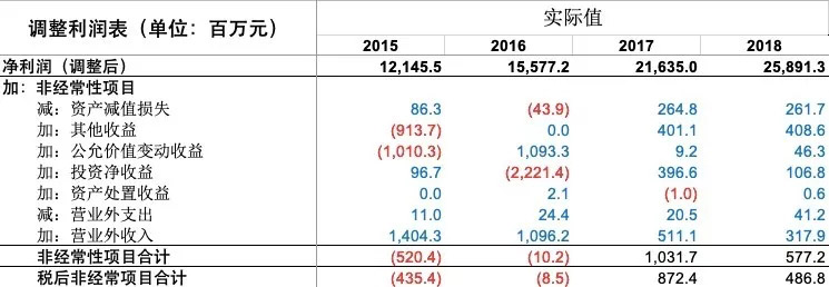 最后,我们求得净利润,即净利润=净利润(调整后)+税后非经常性项目。