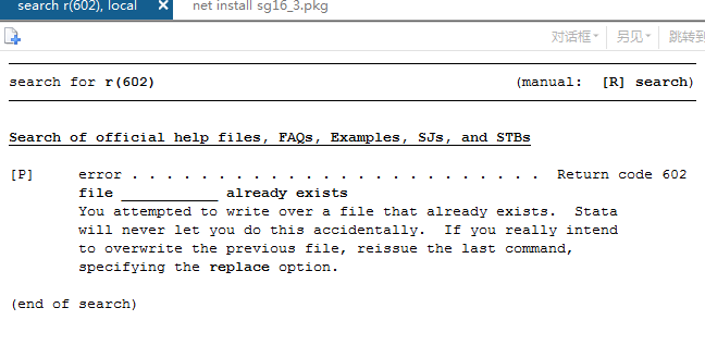 我每次只要想要安装outreg2,就会显示r(602)这个错误,如下图