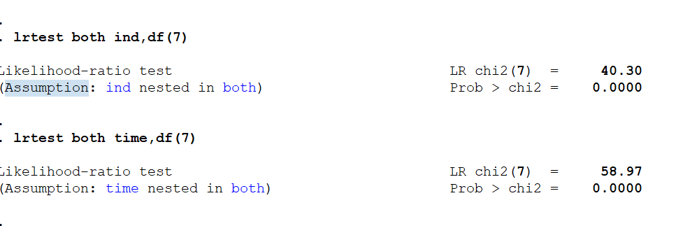 lrtest both time,df()