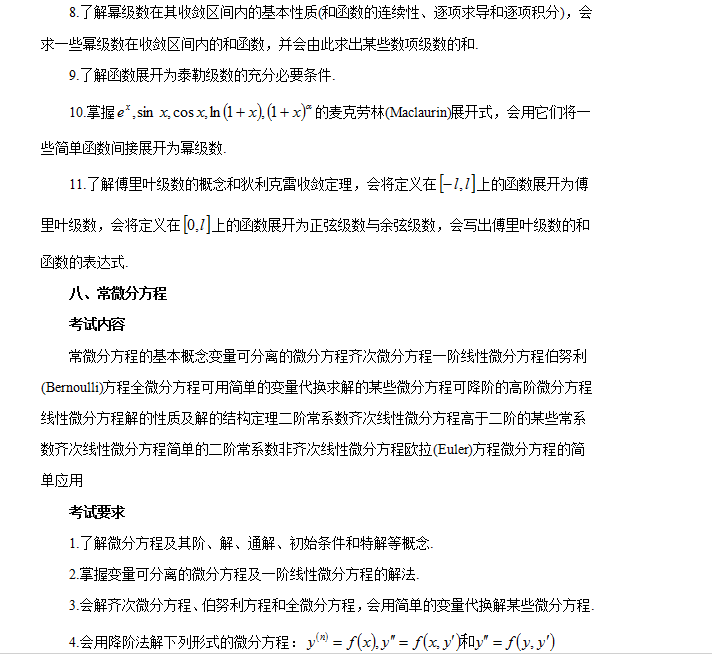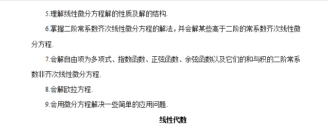 向量的概念向量的线性运算向量的数量积和向量积向量的混合积两向量垂直、平行的条件两向量的夹角向量的坐标表达式及其运算单位向量方向数与方向余弦曲面方程和空间曲线方程的概念平面方程直线方程平面与平面、平面与直线、直线与直线的夹角以及平行、垂直的条件点到平面和点到直线的距离球面柱面旋转曲面常用的二次曲面方程及其图形空间曲线的参数方程和一般方程空间曲线在坐标面上的投影曲线方程