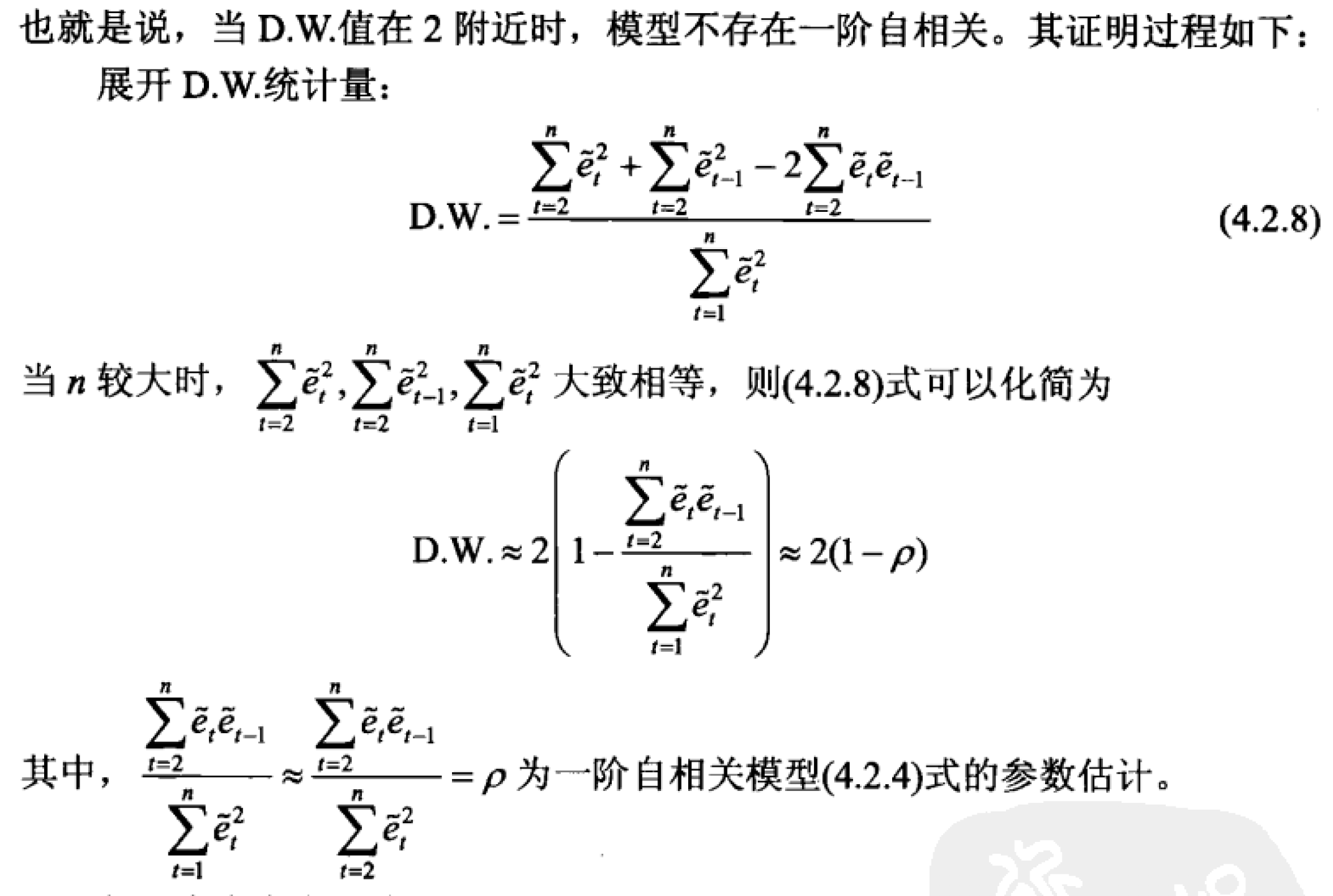 关于DW检验中当统计量为2时,模型不存在自相关的证明