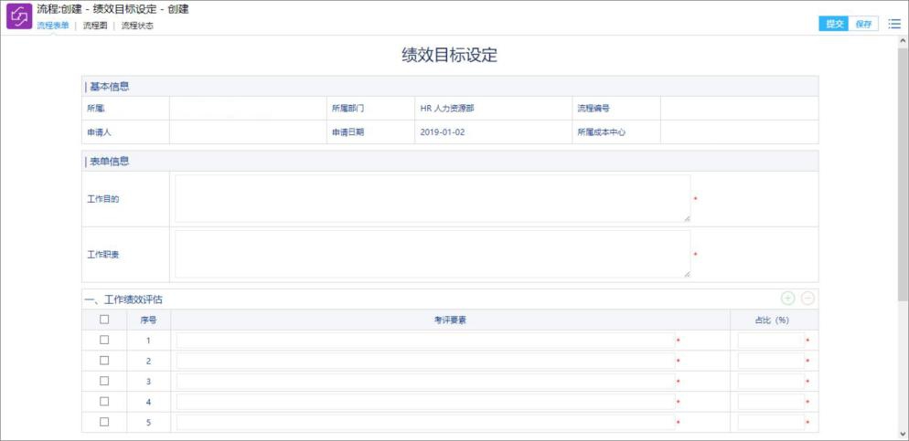 OA系统通过工作流,让员工/主管在年初指定时间节点前,提交完成年度工作目标设定流程,完成各阶段主要目标及考核占比,将目标分解细化。