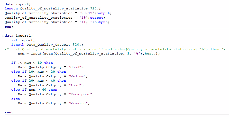 75 if Quality_of_mortality_statistics <= 10% then Data_Quality_Catgory = "Good";