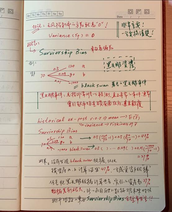 本节介绍了事前回报率与事后回报率的概念,并且与我们常说的“资产回报率”联系起来,阐述了其中的差别和联系,为引入本节的主要内容“均值-方差分析”打下铺垫。