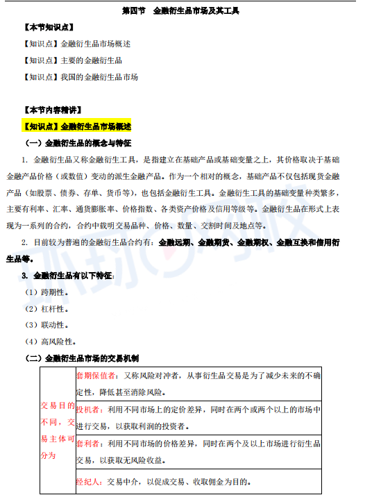 2019中级经济师-金融-精讲班-06、第1章金融市场与金融工具-第4节第5节-金融衍生品市场