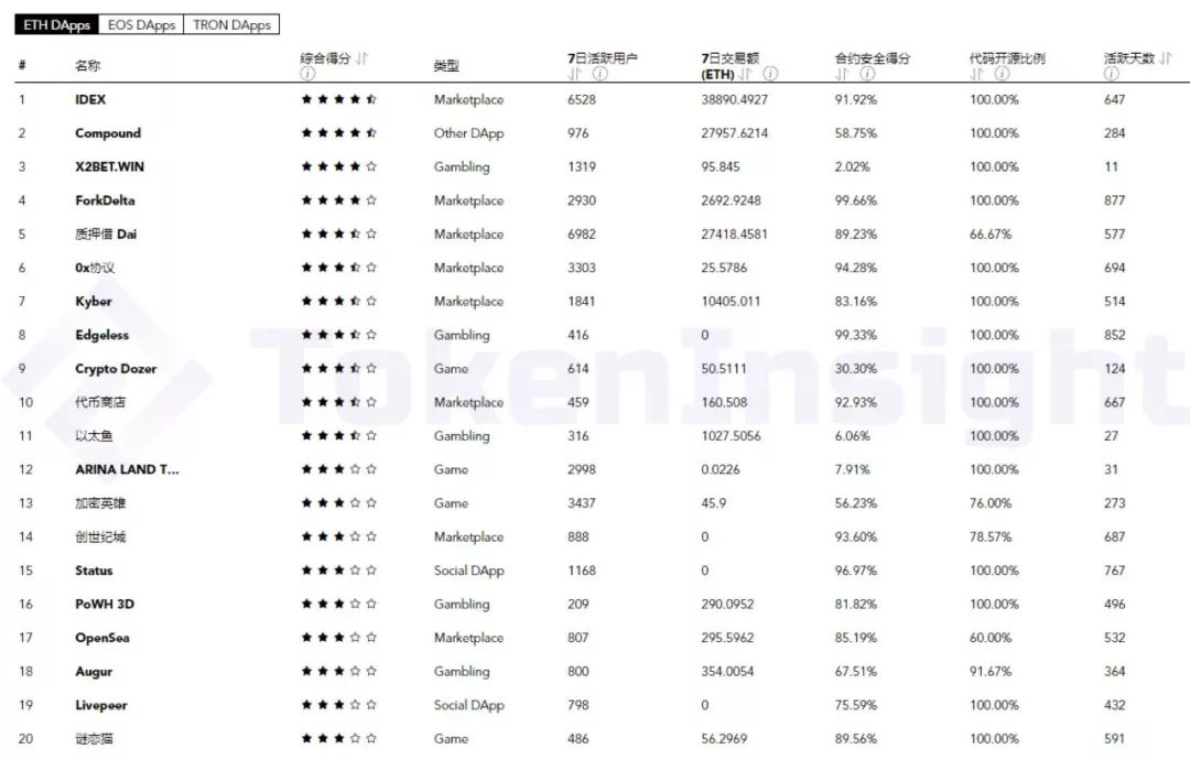 3. ETH DApp排行榜图表3-1:ETH DApp排行榜前20名