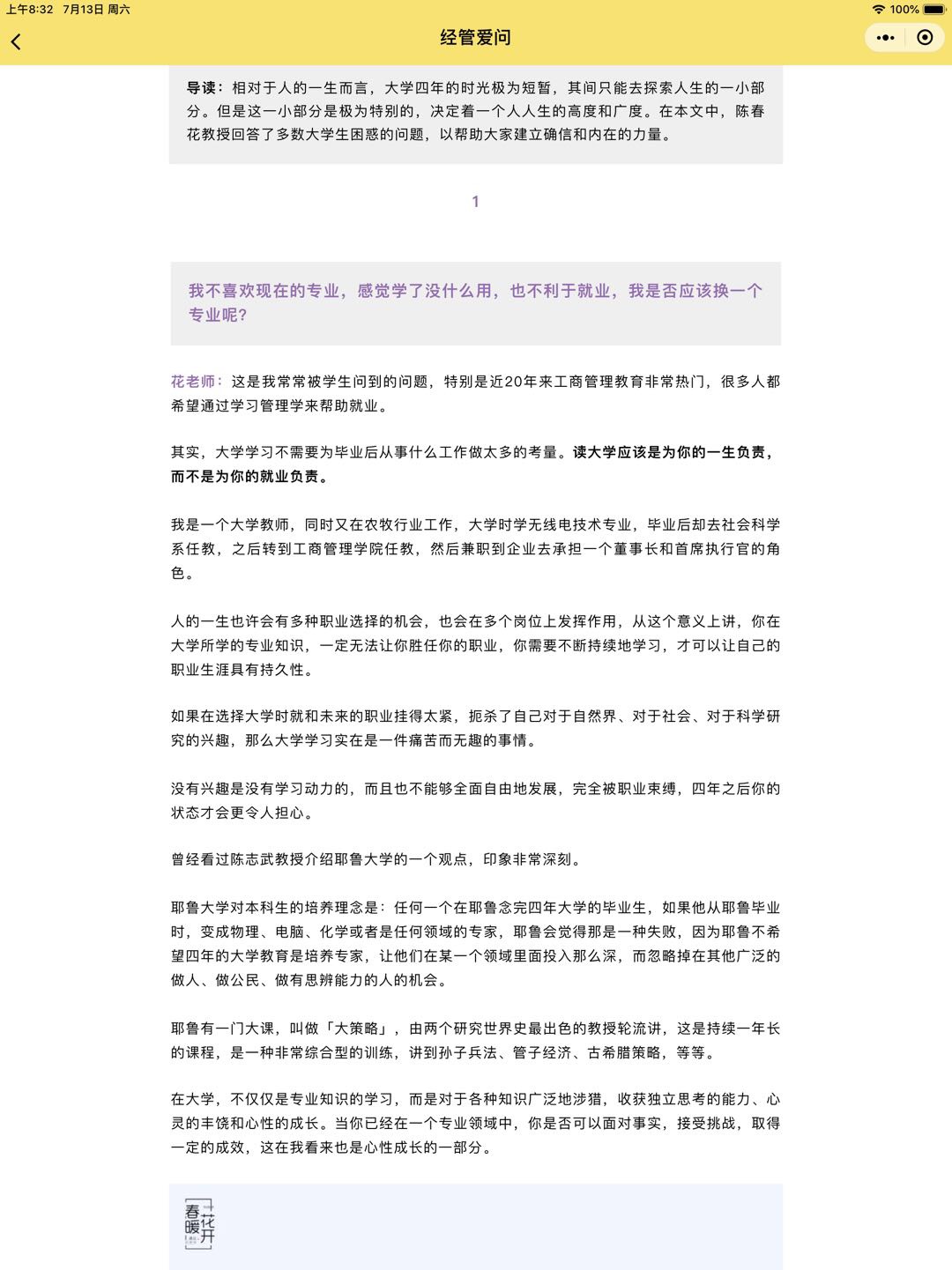 非常棒的文-“没有兴趣是没有学习动力的,而且也不能够全面自由地发展,完全被职业束缚,四年之后你的状态才会更令人担心。”