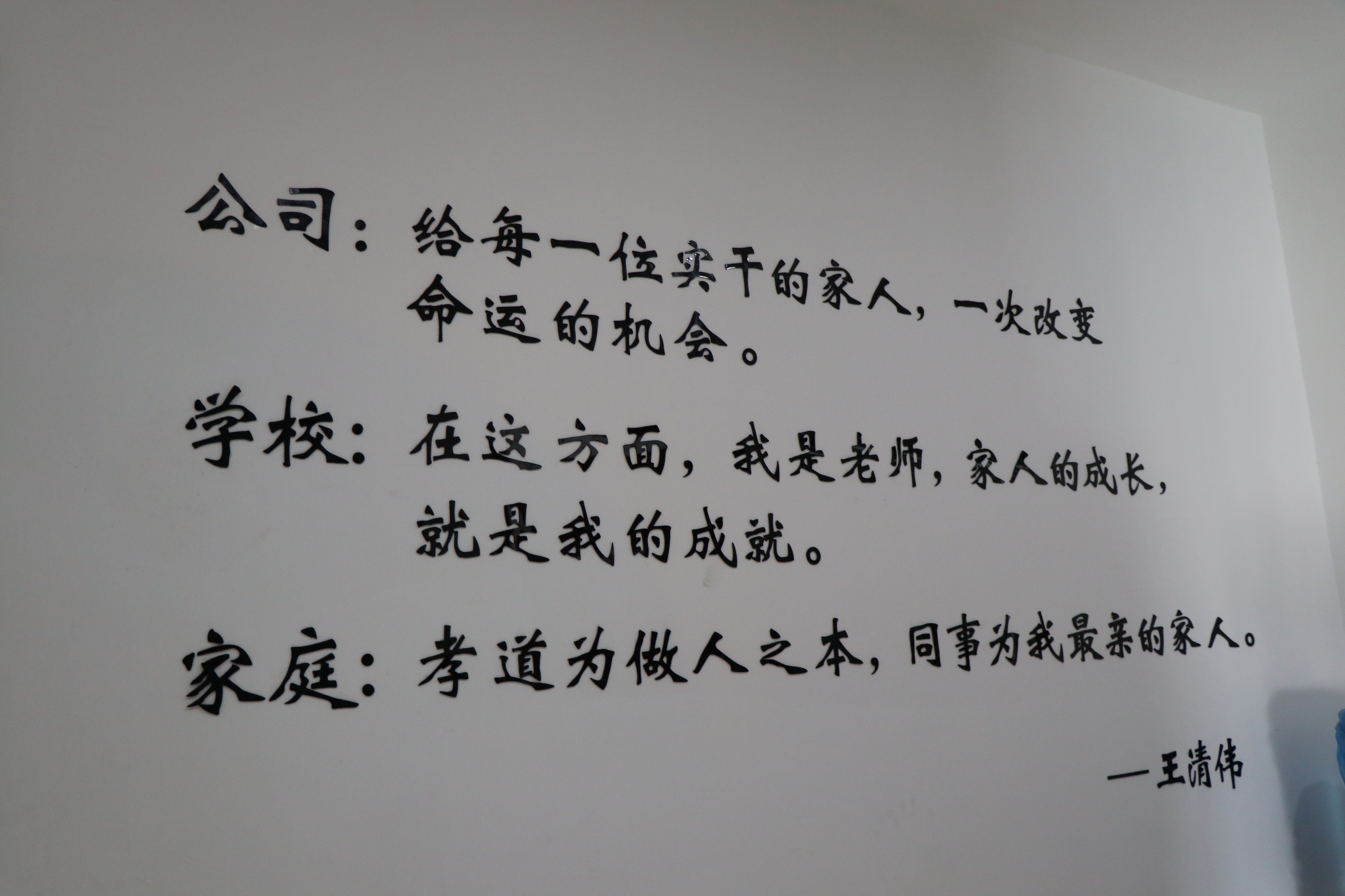 在与王总的交谈中,同学们了解到王总治理公司的核心就是将企业打造成员工的第二个家,让员工有归属感,有家的感觉,这就是索德进出口贸易公司的企业文化之一。该公司坚持不循规蹈矩地和其他公司用同一套系统,而是根据自身的发展需要另辟蹊径,寻找更适合自己的,更好的发展道路。