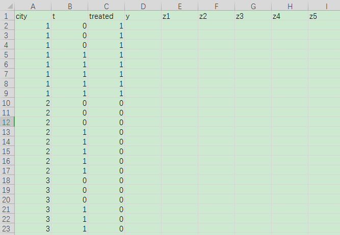 小白一个,为了加入控制变量找了好久,很想知道双重差分中时间是一个维度,分组是一个维度,变量有被解释变量,有解释变量,还有控制变量,到底要怎么排布,才能使用公式diff y,treat period cov(z1 z2) robust report test呢?