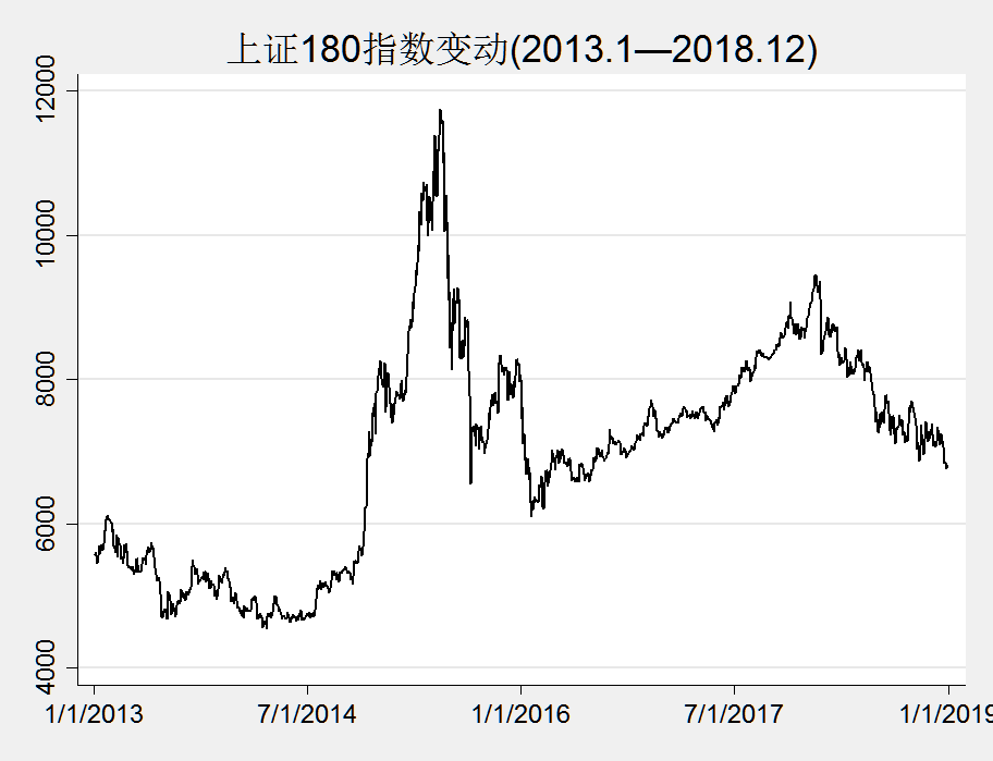 本文选取上证180指数及构成上证180指数样本股日收盘价作为样本。选取的样本区间为2013年1月1日至2018年12月31日,共计1458个交易日,所有样本数据均来源于wind数据库,收益率使用