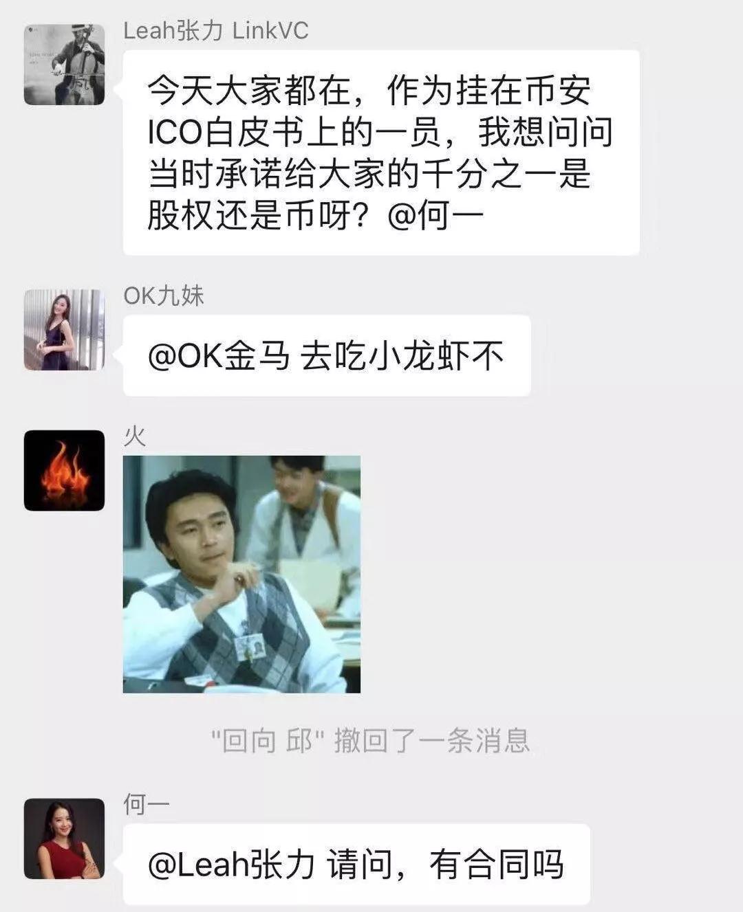 今天币安的联合创始人何一女士在一个群内公开回复了我的问题。而且在私下里我也向她阐述了事情的经过。