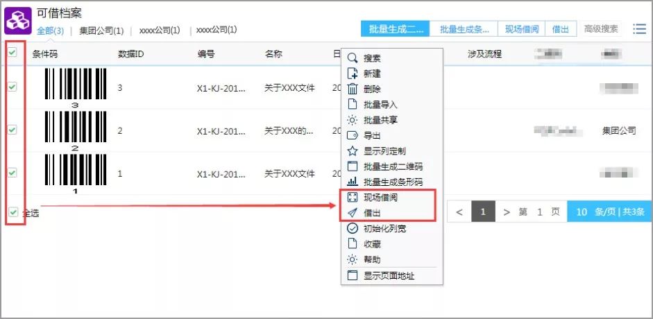 有时可能会出现一次借阅几十份文件资料,手动操作太麻烦,为了缩短办理时间,现在可以通过泛微OA的电子表单根据关键字筛选文件,一键“批量借阅”,体验更快。