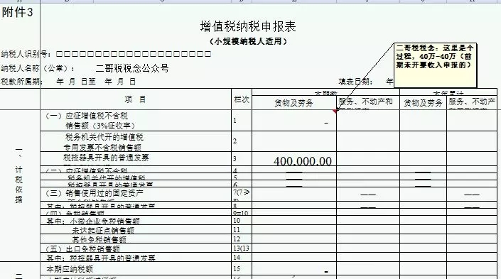 比如你有40万的未开票收入,那么你就都填写在第一栏,第2、3栏是其中项,没有开票就不用填写。