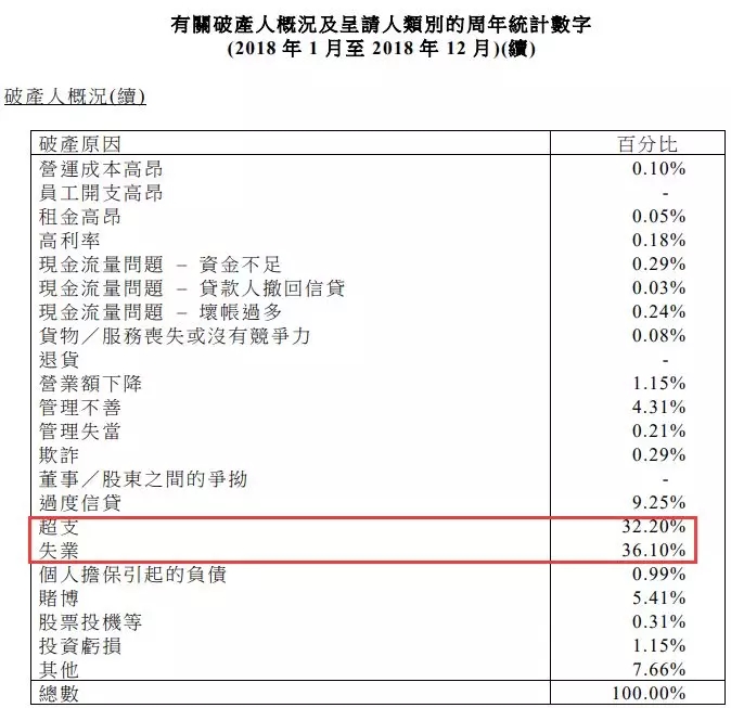 导致他们破产的原因,32%是因为超支,36%是因为失业,9%是因为过度信贷......