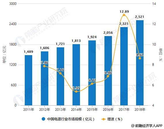 2011-2018年中国电源行业市场规模统计及增长情况预测