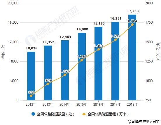 2012-2018年全国公路隧道数量、里程统计情况