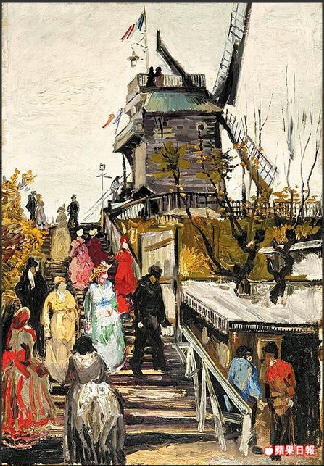 汉宁玛在1984年辞世,事隔25年,艺术专家才证实他的眼光无误。梵谷美术馆专家提柏指出,该画是1886年梵谷旅居巴黎时所绘,呈现蒙马特地区的风车磨坊与游人如织。虽然画作人物尺寸较大,有违梵谷风景画典型风格,但用色明亮却是一致。此外,画作帆布是出自梵谷经常往来的店家,用的颜料也与其它画作相同。