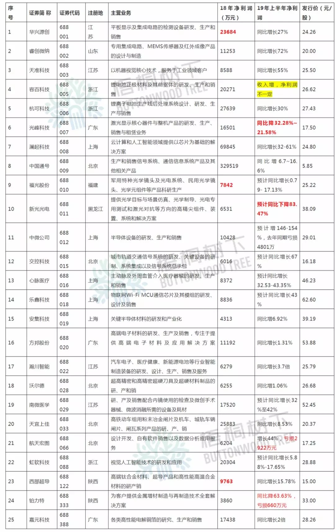 25家公司中,光峰科技、新光光电、铂力特等3家公司2019年上半年净利润同比下降。容百科技2019年上半年营业收入同比增长,但净利润是增长还是下降无法确定。