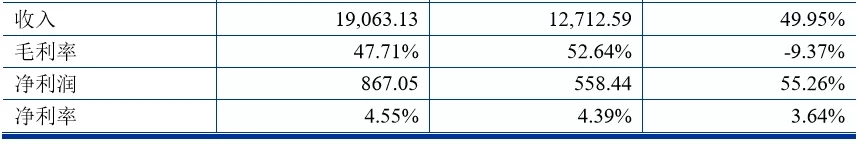 2019年上半年,营业收入、净利润同比2018年上半年分别增长49.95%、55.26%。