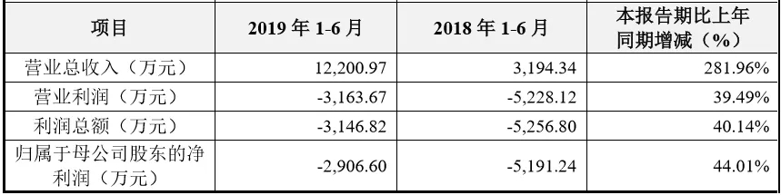 2019年上半年,营业收入同比大幅增长,净利润同比增长44%,但仍是亏损2922万元