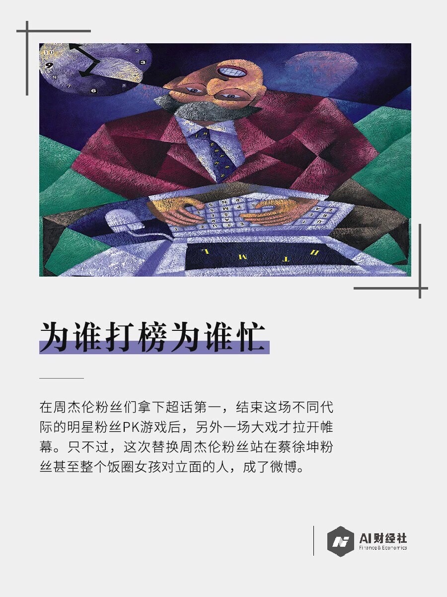 因为新浪和周杰伦互相盈利了,微博现在的知名度和受众面,这次超话,周杰伦相当于花了几千万甚至更多打了一个对010后的广告,不能说全怪新浪,这次就当我们这批叔80,90后给偶像助力一次吧,因为我们真没做过,别说,还真香,告诉榜单上的人和各家公司,下次可能是各家音乐榜单了,告诉流量们实力胜于一切,有实力,你想要第一就第一,还不用花钱买榜。无论何时,作品才是第一生产力。虚假数据可以提供暂时的热度和资源,但是若没有作品没有实力,再好的数据也是空谈。