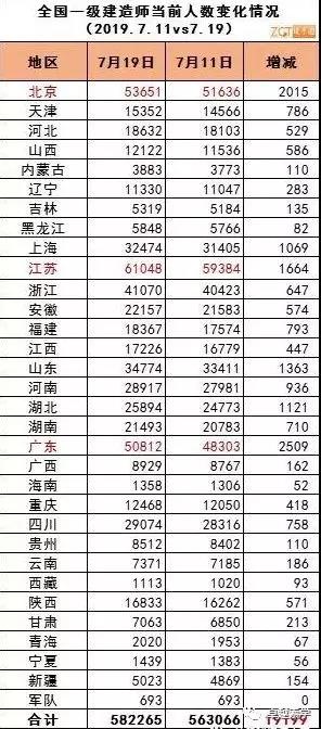 不过随着新证下发和部分老证重新注册,一级建造师数量逐渐回升。从中国建造师网查询可知,截止7月19日,一级建造师数量升至58.2万,相比7月11日净增了1.9万余人一建注册人数先跌后升,犹如过山车!)