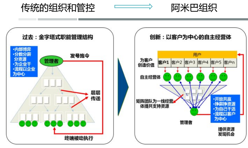 很多大型企业,其组织结构往往是层级烦冗,反馈和执行链漫长的金字塔组织结构。这就导致企业无法感知市场变化,缺乏迅速应对能力。