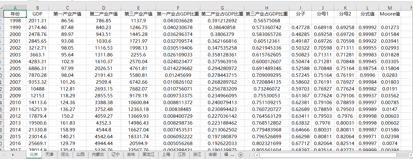 libo8899551234 发表于 2019-7-24 17:52 衡量产业结构合理化指数很多,较为常用的有Moore指数 该方法运用空间向量测定方法,以向量空间中夹角为基础 ...