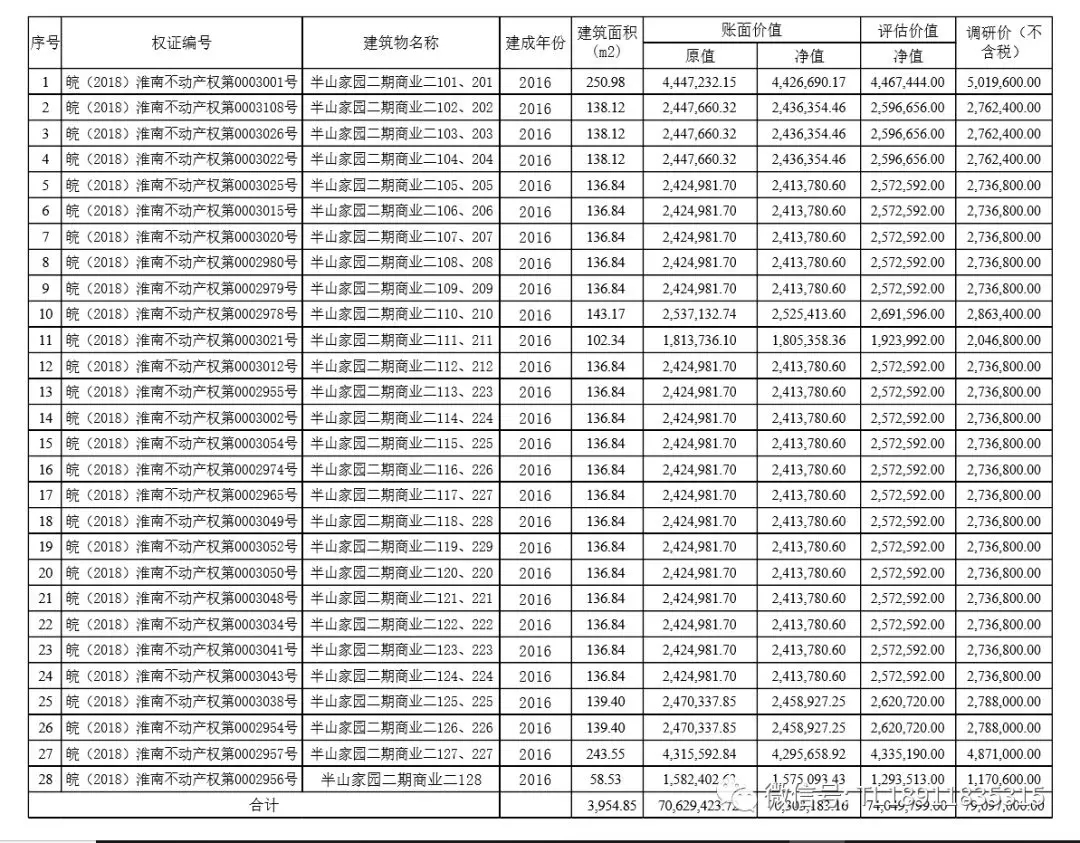 为加快推进低效无效资产清理处置工作,有效回笼资金,改善资产结构,审议通过公司以评估值 7404.98 万元为基础,以按市场调研价格 7909.7 万元,加计交易税金为挂牌价,预计交易增值税税金为711.87 万元,合计挂牌价(含增值税)为 8621.57 万元,通过产权交易所公开出售安徽省淮南市半山家园二期商业楼 28 套房产。 同意 9 票,弃权 0 票,反对0 票