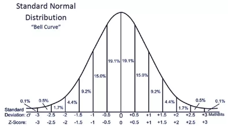 标准正态分布曲线是很有用的,因为我们可以比较测试结果和在标准差中有标准单位的「正态」总体,特别是在变量的单位不同的情况下。