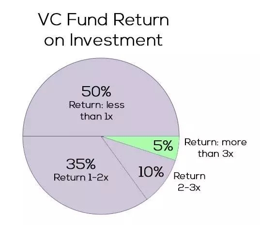 一位以色列知名的LP说:“95%的VC都不赚钱。”在 LP面临着风险、管理费支出和资金锁定的情况下,95%的VC基金实际上不能给LP带来足够的回报。一只VC基金只有得到3倍的回报才能达到“风险回报率”的及格线,只有5%的VC基金做到了,其余95%正处于在收支平衡和完全亏损之间的某个点(别忘了还有通胀),其中10%的基金回报在2-3倍,35%的基金回报在1-2倍,高达50%的基金回报低于1倍。