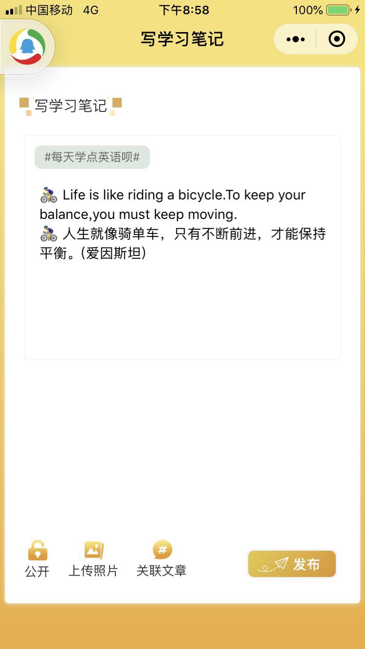 【学习笔记】 Life is like riding a bicycle.To keep your balance,you must ...