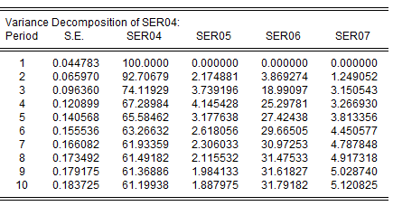 其中SER04代表地区生产总值,SER05代表年末就业人数,SER06代表固定资产投资,SER07代表高等教育经费投入,方差分解结果是固定资产投资对GDP冲击贡献度始终最大,但回归结果固定资产的参数T值并不显著,(计量新手小白,不是很懂多多包涵)这两个结果是不是出现矛盾了?还是方差分解结果与回归结果的意义根本不是一回事?还是我在哪个步骤出了问题