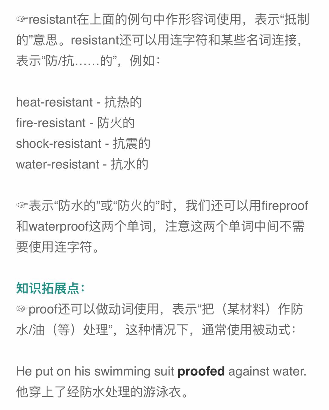 resistant 除了“抵制的”意思,还可指“防/抗……的”