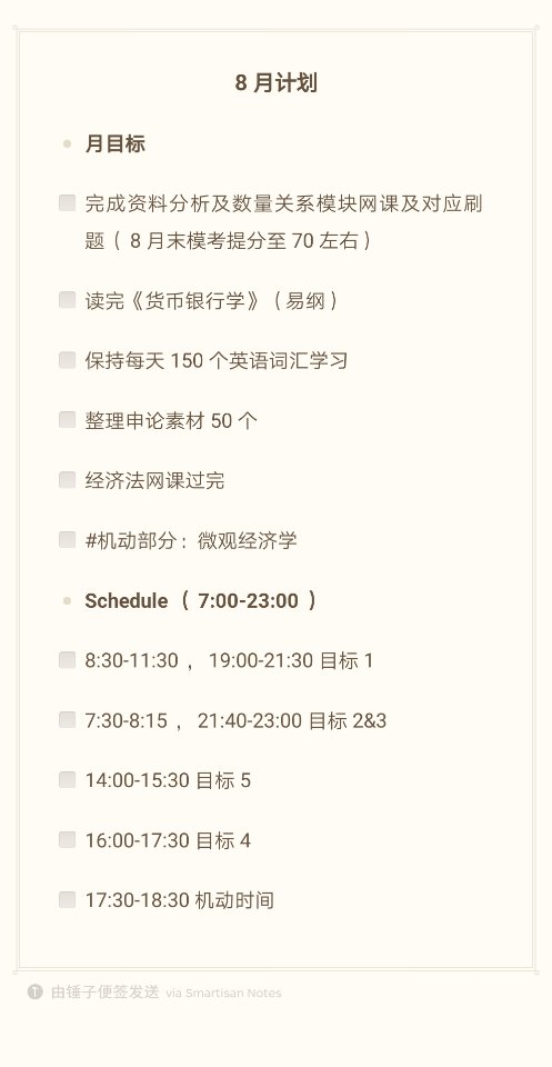 8月计划