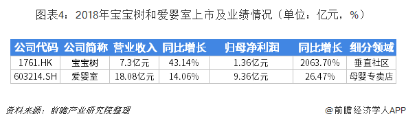 2018年,母婴渠道领域的领先企业宝宝树和爱婴室相继于港股和A股上市,其细分领域分别为垂直社区和母婴专卖店,并于上市当年分别取得了7.3亿元、18.08亿元的营收和1.36亿元、9.36亿元的净利润的好成绩。这意味着母婴渠道领域在经历了2015-2017年的快速发展后,部分企业的商业逻辑已相对成熟,进入资产证券化的初期阶段,后续一级市场部分优质的母婴渠道企业可能陆续进入资产证券化阶段。