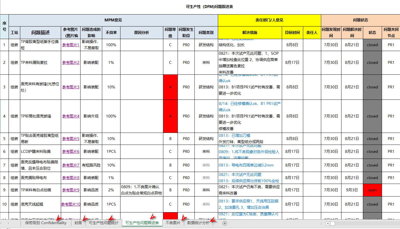 2、可制造性/可生产性问题跟进表