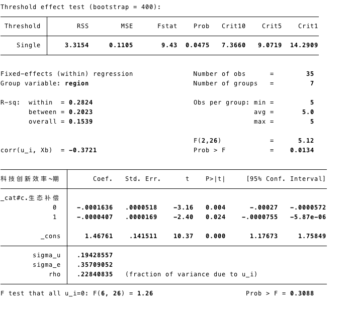 nice11 发表于 2019-8-5 16:20 现基于区县数据研究政策对科技创新效率的门限效应。样本数量较少35个。 目前问题是,若只选取政策变量一个 ...