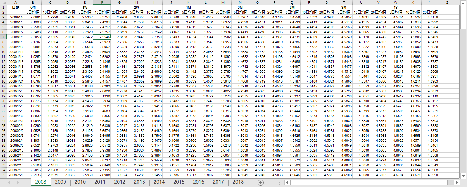 Shibor均值数据(2008-2018年数据)