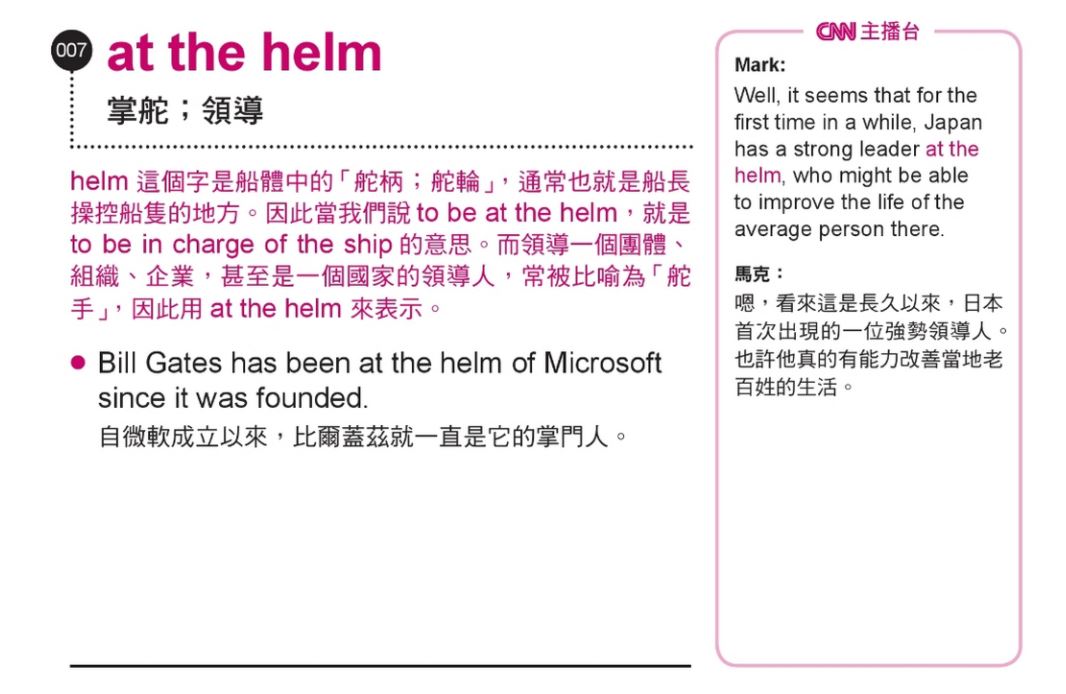 【学习笔记】at the helm / boil down to