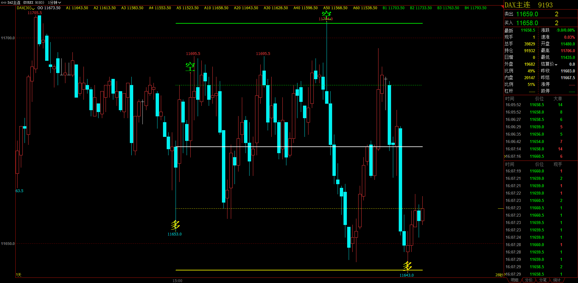 [backcolor=rgba(255, 255, 255, 0.7)]到这里如果还没有看懂的朋友请不要着急,接下来给大家完整演示一遍我这套交易系统的的交易流程,以恒指为例,因为恒指是最适合做日内交易的品种,如果还有那就是德指。我一般交易的时间主要在上午(9:15---12:00),下午(13:00---16:30)。晚盘(17:15---1:00)我是不交易的。(第一是因为下午收盘后我个人有很大的工作量,第二是晚盘交易量小,交易机会较少,第三是因为生活和交易还是要分开,不能终日扎根于交易,据说这样可以活的久一点!)
